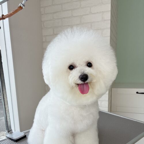 美しいアフロと真っ白な被毛を維持するためには、月に1回のトリミングが理想的です。毛玉がひどくなる前にプロのケアを受けることで、ワンちゃんの肌への負担も最小限に抑えられます。