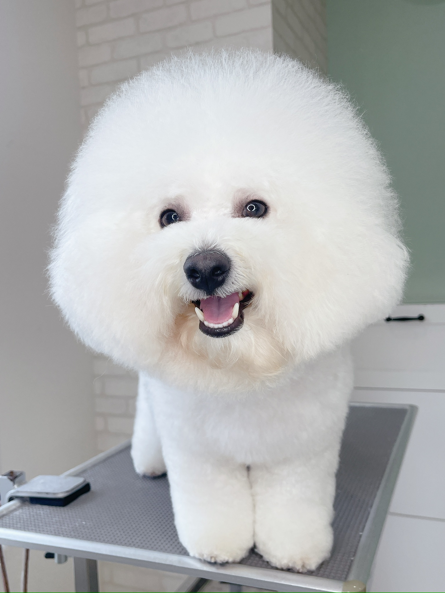 美しいアフロと真っ白な被毛を維持するためには、月に1回のトリミングが理想的です。毛玉がひどくなる前にプロのケアを受けることで、ワンちゃんの肌への負担も最小限に抑えられます。